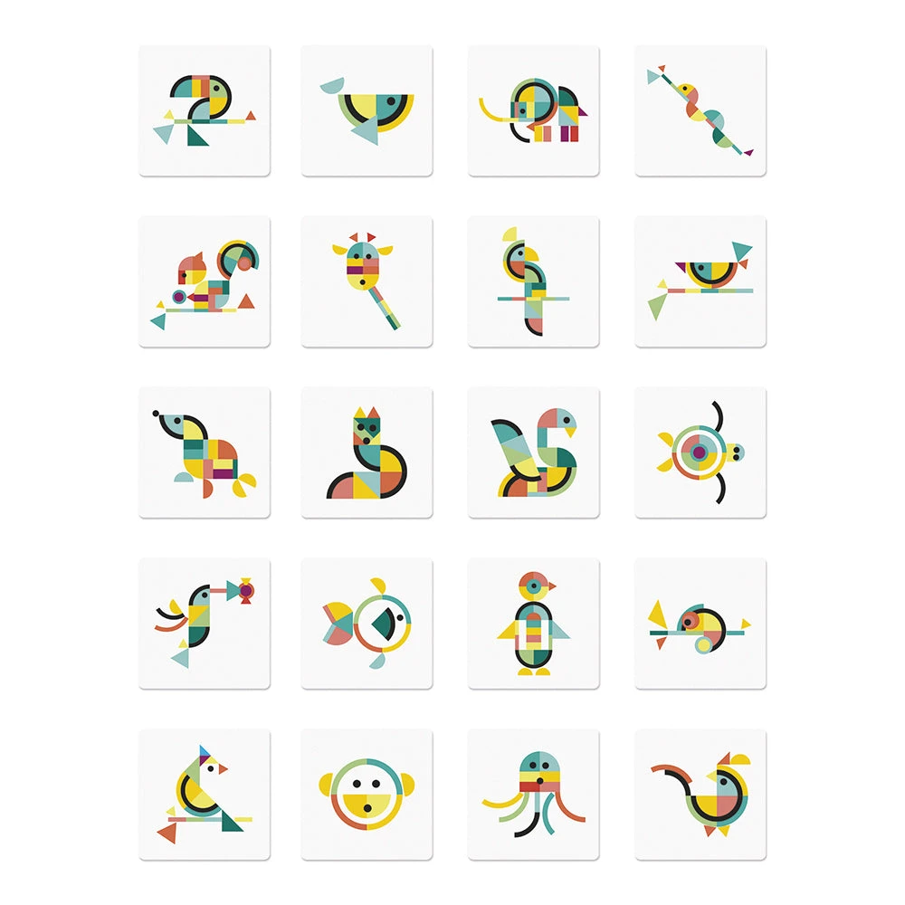 Een houten JANOD koffer vol magneten om dieren mee te puzzelen. Kies 1 van de 20 voorbeeldkaarten en maak ze na met de magnetische vormen. Deze magneetpuzzel is geschikt voor kinderen vanaf 3 jaar.Â