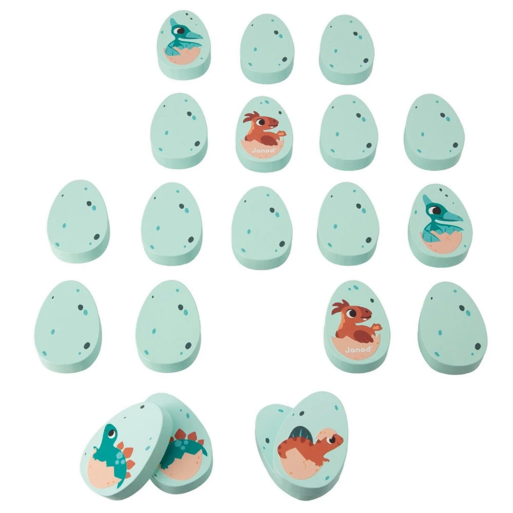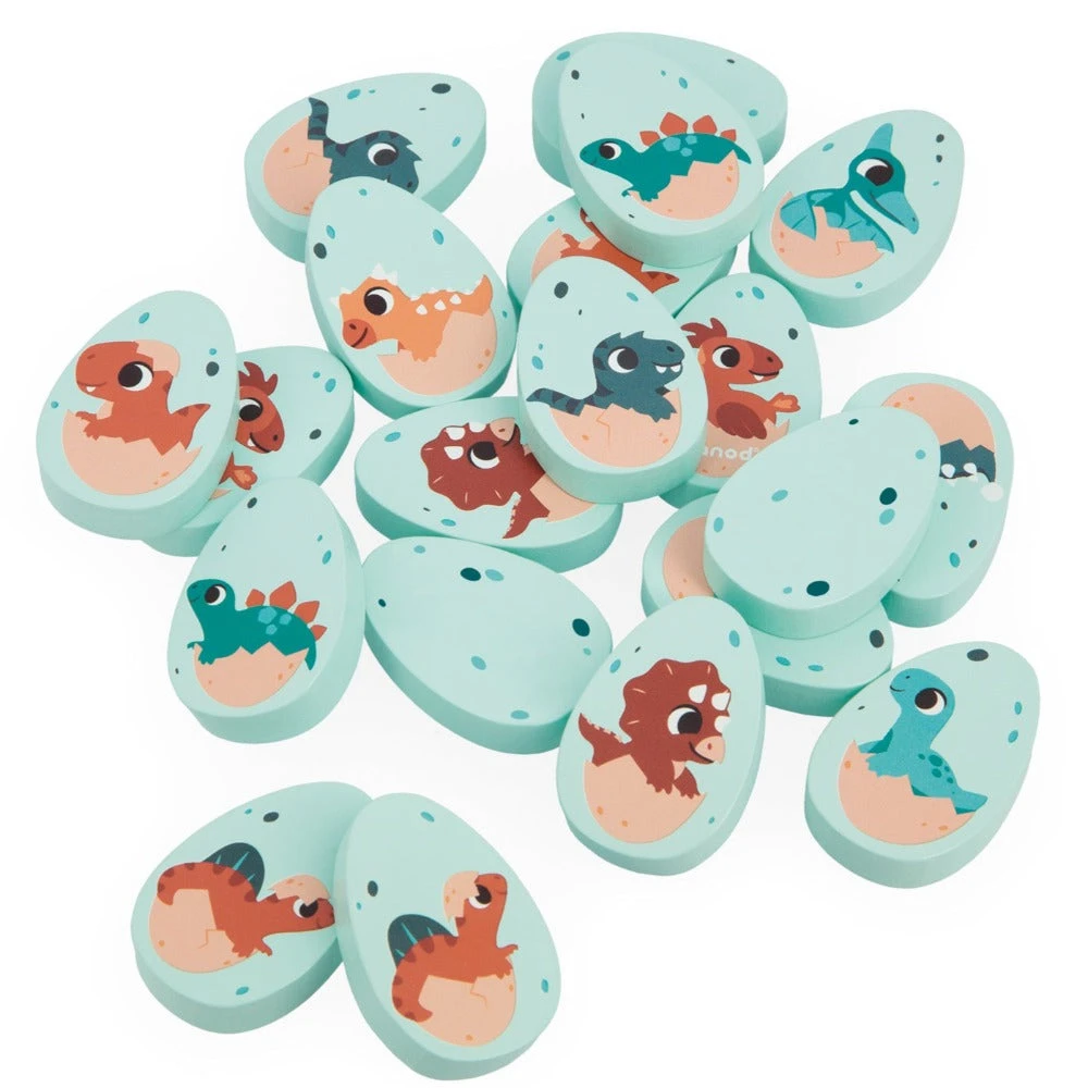 JANOD houten memory spel met 20 dino eieren waarmee je 10 paren maakt. De grote speelstukken met dieren zijn geschikt voor kinderen vanaf 2 jaar.