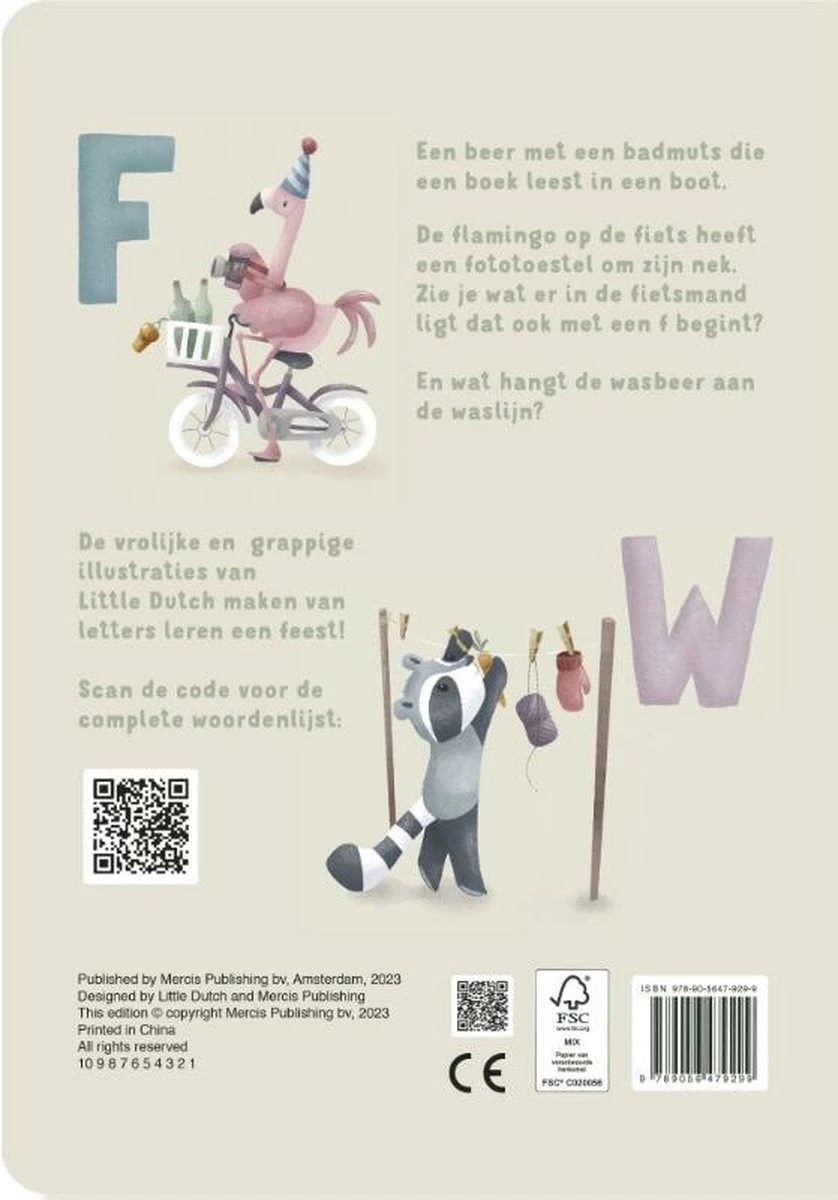 Little Dutch Mijn ABC boek is een groot kartonboek met vrolijke illustraties bij de letters uit het alfabet.