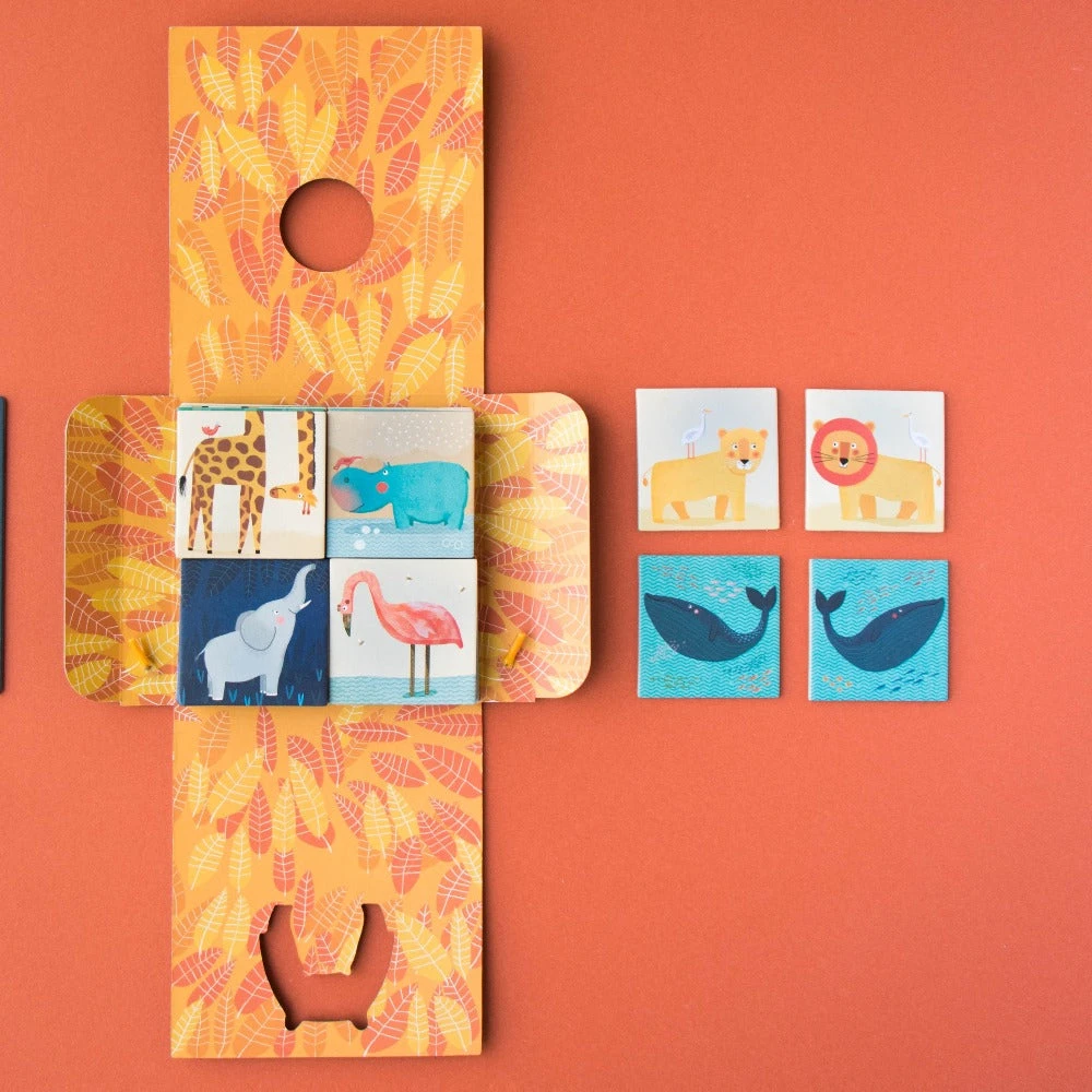 Dieren memory spel van LONDJI, Wild animals memo heeft 32 kaartjes, om 16 sets te leggen. De dieren memory is geschikt voor kinderen vanaf 3 jaar.Â