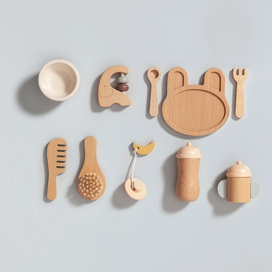 Verzorg je pop en knuffel met deze geweldige houten poppen eetset van Petit Monkey. Een hele complete verzorgingsset voor poppen, het perfecte speelgoed voor poppenmoeders en -vaders vanaf 3 jaar. Â