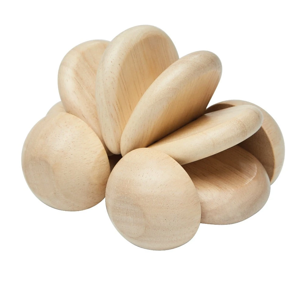 Dit houten babyspeelgoed is gemaakt van latex bomen die geen latex meer produceren. Het hout wordt vermalen en versterkt in een vorm gegoten. Het enige speelgoedmerk wat 100% duurzaam is omdat alle benodigdheden uit de natuur gehaald worden.